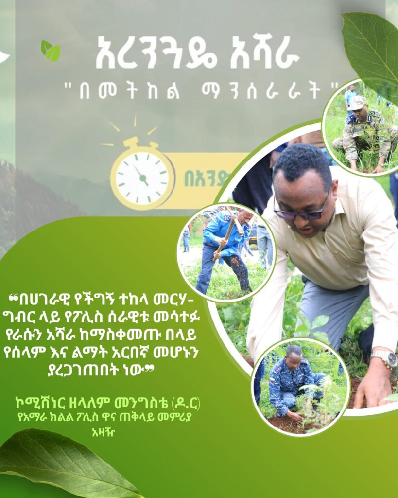 ❝በሀገራዊ የችግኝ ተከላ መርሃ-ግብር ላይ የፖሊስ ሰራዊቱ መሳተፉ የራሱን አሻራ ከማስቀመጡ በላይ የሰላም እና ልማት አርበኛ መሆኑን ያረጋገጠበት ነው❞ ኮሚሽነር ዘላለም መንግስቴ (ዶ.ር) የአማራ ክልል ፖሊስ ዋና ጠቅላይ መምሪያ አዛዥ