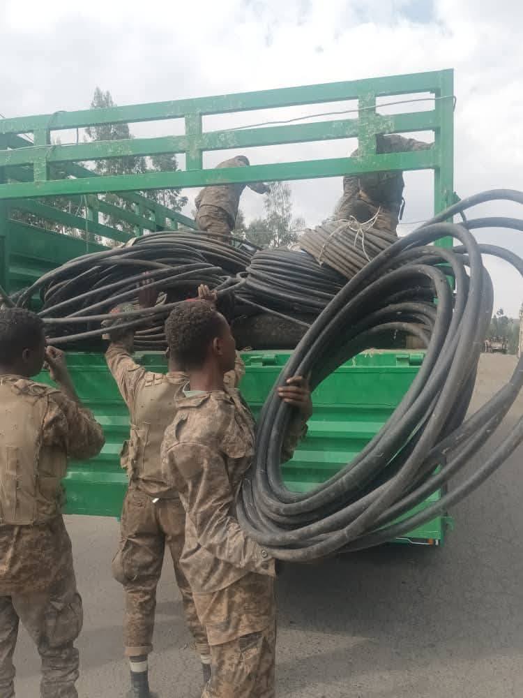 በደቡብ ጎንደር ዞን ላይ ጋይንት ወረዳ ሳሊ ቀጠና የተሰማራው ጥምር ጦር በአካሄደው ህግ የማስከበር ተግባር በህገወጥ ቡድኑ የተዘረፈ የመሰረተ ልማት ማስፋፊያ ቁሳቁሶች ተይዘዋል።