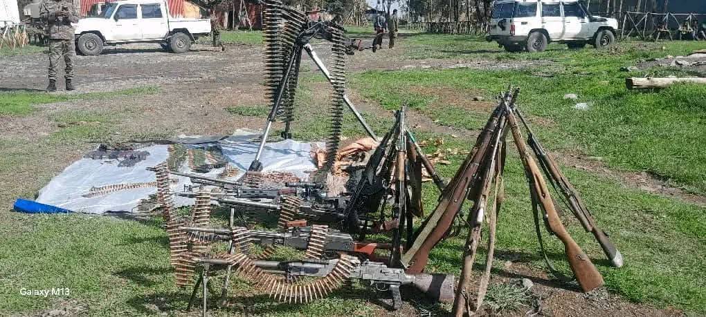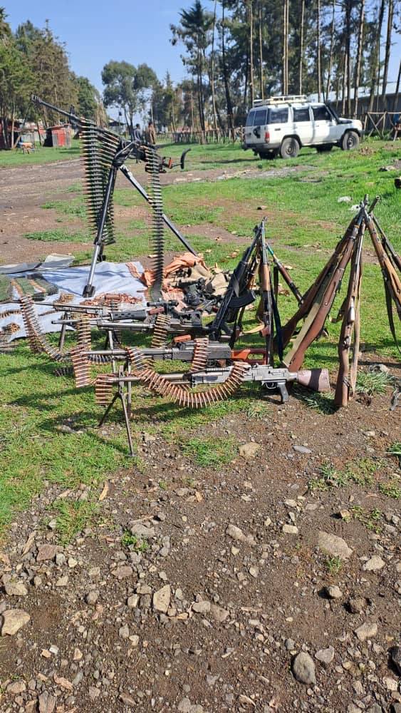የቡድኑን አባላት ድሽቃ መሳሪያ 1 ከመሰል 295 ጥይት ከ5 ሸንሸል፣ ብሬን መሳሪያ 4 ከመሰል 839 ጥይት 6 ሸነሸል፣ ስናይፐር 1 ከ6 ካዝና 44 ጥይት፣ ክላሽ መሳሪያና 6 ከካርታ 22 እና 549 ጥይት፣ ኤስ ኬይ ኤስ እና ቃታ መሣሪያ 6፣ የአጅ ቦንብ 8 እና የተለያዩ ካዝና 22 ሸንሸል 4 በአጠቃላይ 17 የተለያዩ የጦር የመሣሪያ እና ሌሎች ተተኳሽ ጥይቶችን በመያዝ በፍቃደኝነት እጅ ሰጥተዋል።