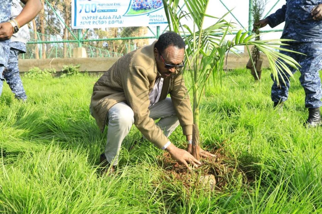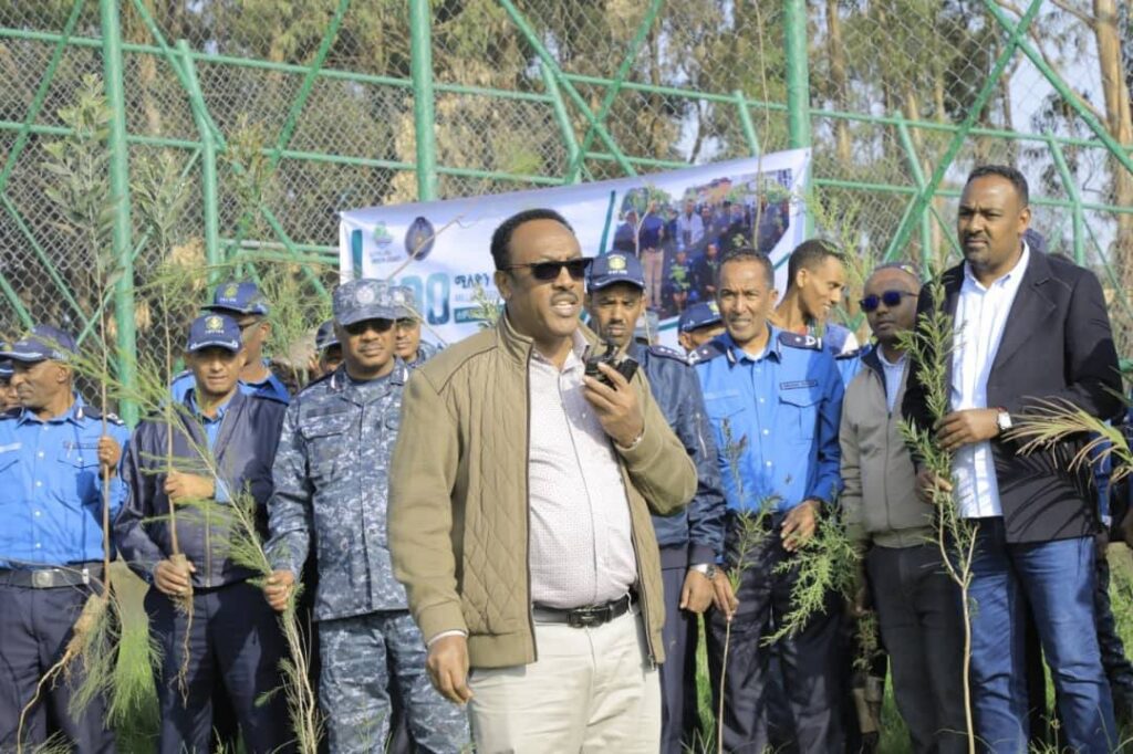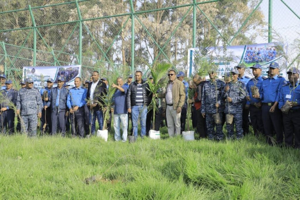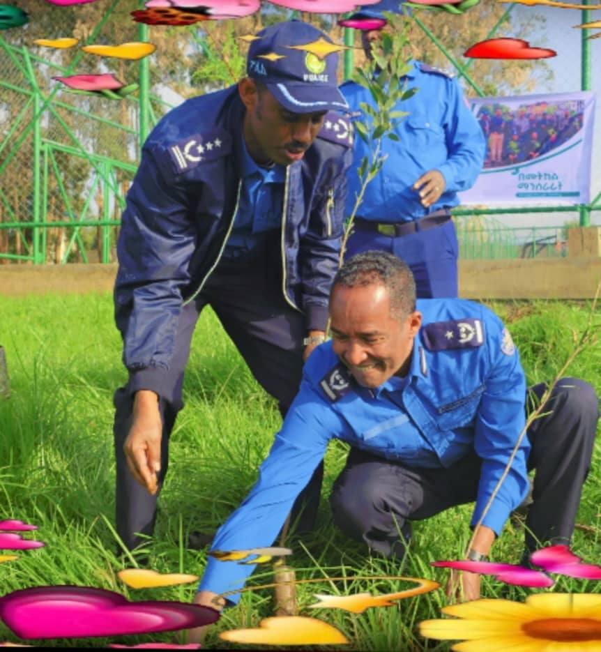 በኢትዮጵያ ፖሊስ ዩንቨርሲቲ ስልጠና እየወሰዱ ያሉ የአማራ ክልል ፖሊስ ስትራቴጅክና ከፍተኛ አመራሮች በዛሬው ዕለት በሰንዳፋ በኬ ከተማ እና በኢትዮጵያ ፖሊስ ዩኒቨርሲቲ ቅጥር ግቢ የችግኝ ተከላ አካሄደዋል።