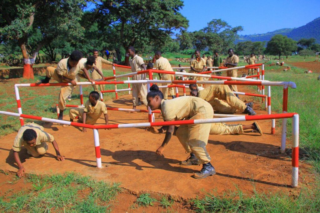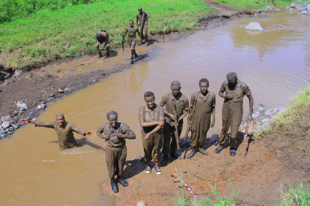 የሳንጃ ውግ፣ ስልት፣ ተኩስ፣ መሰናክል ብቻ በሁሉም ወረዳዎች “የላብ ደምን ያድናል” መርህን ከላብ ባለፈ ትጋት እንደ ተርብ በየወረዳቸው በአስደማሚ ፅናት ሲሰለጥኑ ሲታይ ይህ ሁሉ ‘ስለ ኢትዮጵያ’ ነውና በትንታጎቹ የሚያስመካ አንዳች ስሜት የሰራ አካልን ይቆጣጠራል።