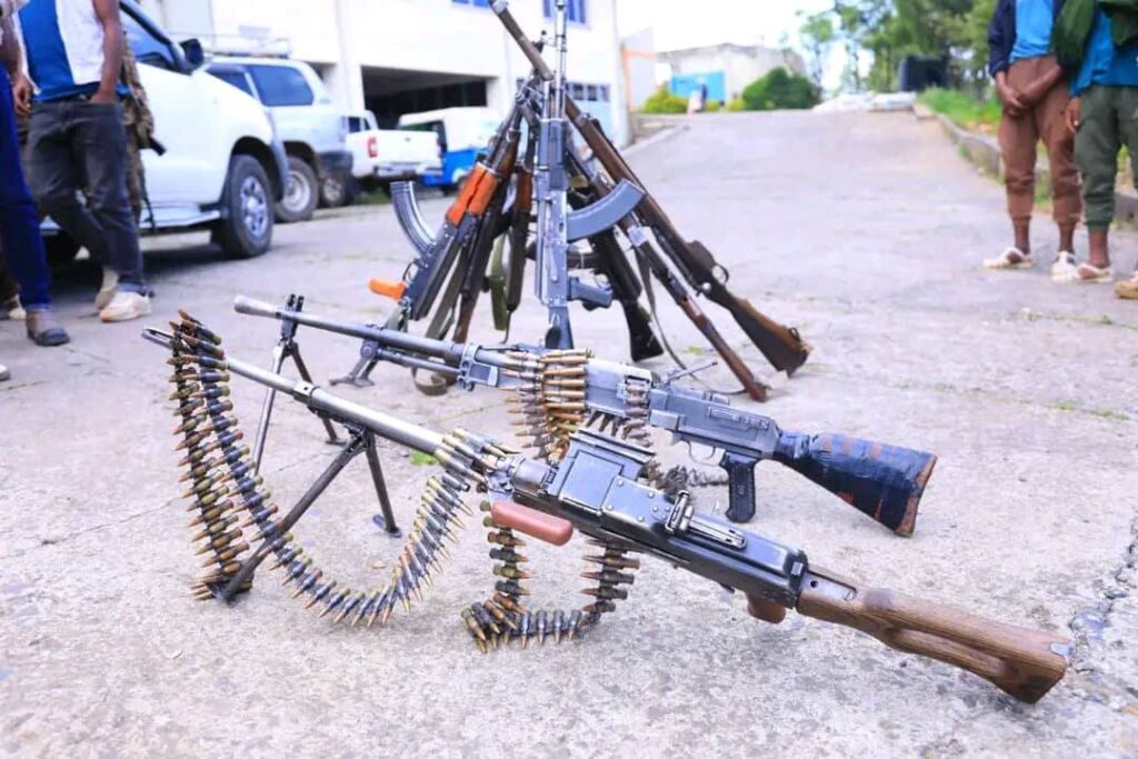 ታጥቀው በጫካ ሲንቀሳቀሱ የነበሩ የታጣቂ የቡድኑ አባላት የሠላም አማራጭን ተቀብለው ገቡ።