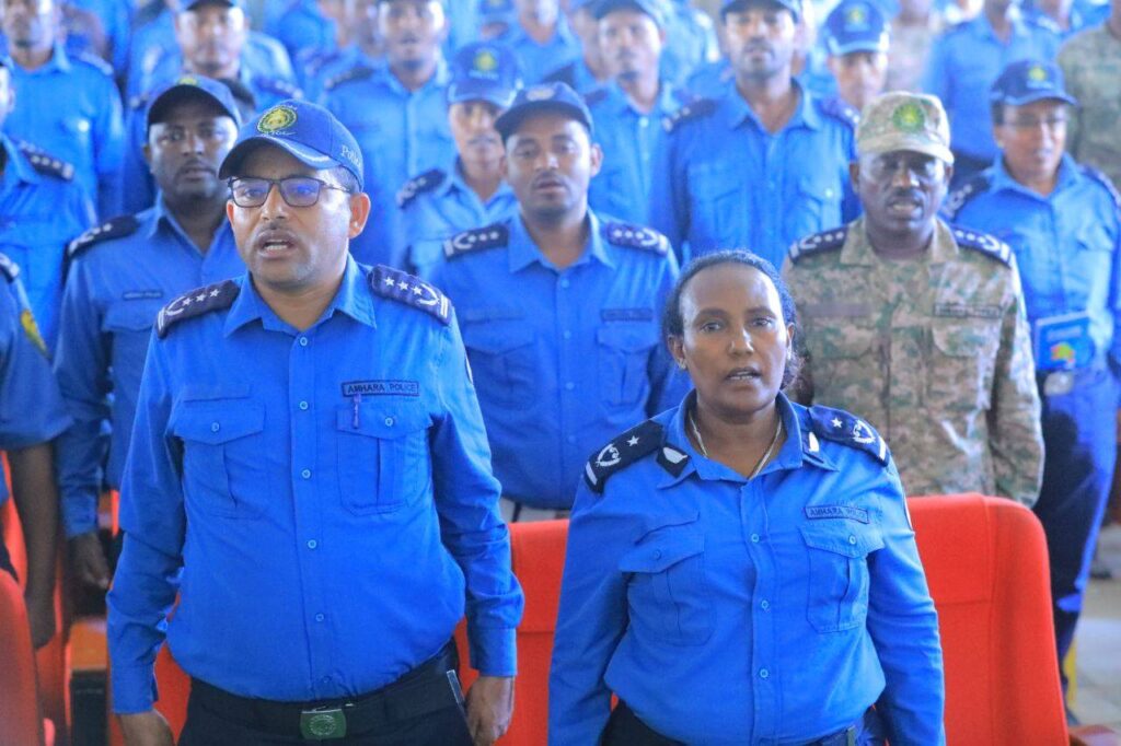 ኮሚሽነር ዘላለም መንግስቴ (ዶ/ር) የአማራ ክልል ፖሊስ ዋና ጠቅላይ መምሪያ አዛዥ በስልጠናው ማጠቃለያ ተገኝተው የቀጣይ ተግባራት እና አቅጣጫዎችን አስመልክቶ መመሪያ ሰጥተዋል።