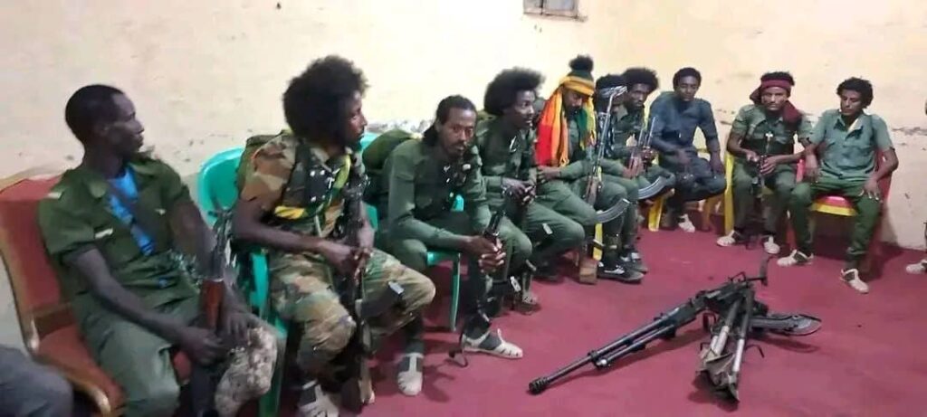 ህገ-ወጥ ታጣቂ ቡድኑ ሲገባ አንድ ዲሽቃ፣ አንድ አርባ ጎራሽ እና አምስት ክላሽ መሣሪያ እንዲሁም አባላቱ እስከነ ሙሉ ትጥቃቸው በሰላማዊ መንገድ ለመንግስት እጅ ሰጥተዋል።