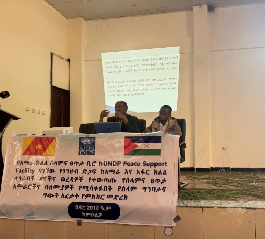 የአማራ እና የአፋር ክልል ተጎራባች ዞኖች እና ወረዳዎች የተውጣጡ የጸጥታ አመራሮች እና ባለሙያዎች የተሳተፉበት በሰላም ግንባታ እና በግጭት አፈታት ላይ ያተኮረ የምክክር መድረክ በሰላም ሚኒስቴር እና በUNDP ድጋፍ ነው በኮምቦልቻ ከተማ የተሰጠው።