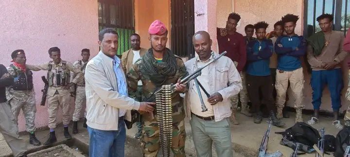 ታጣቂዎቹ ለመንግስት እጅ የሰጡት ከነሙሉ ትጥቃቸው ሲሆን፣ ያስረከቧቸው የጦር መሳሪያዎችም